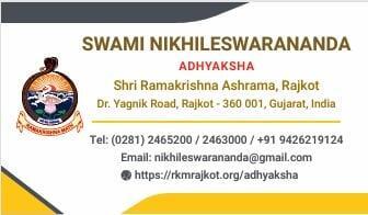 Swami Nikhileshwarananda currently heads Shri Ramakrishna Ashrama, Rajkot which is a branch centre of Ramakrishna Math, Belur Math. Ramakrishna Math & Ramakrishna Mission, the distinguished worldwide organizations were started by Swami Vivekananda around 125 years back, having their Headquarters at Belur Math, (District – Howrah, West Bengal – 711202) and presently have 265 branches all over the world. He graduated in Chemical Engineering and post-graduated in Industrial Engineering and worked as a management consultant for a brief period and then renounced the world and joined the Ramakrishna Mission as a monk in 1976. He has guided the rural and tribal development project at Ranchi which received the award for the best Krishi Vigyan Kendra in the country and has been the editor of the monthly ‘Shri Ramakrishna Jyot’. He has spearheaded an earthquake rehabilitation project and was also responsible for starting the Vivekananda Institute of Value Education and Culture.